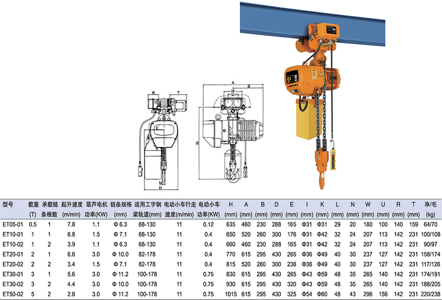 ● 環鏈電動葫蘆自重輕,尺寸小。