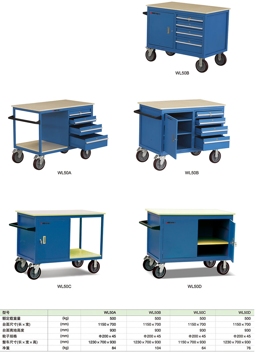 ● WL 50B、WL .50C柜內有二層可拆卸鋼板。間距為190mm。